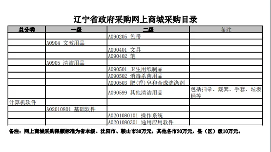 本次征集开通的目录主要涵盖《附件2:辽宁省政府采购网上商城采购目录》中货物类的目录,服务类、工程类目录将根据网上商城后续运营情况适时开展征集工作。